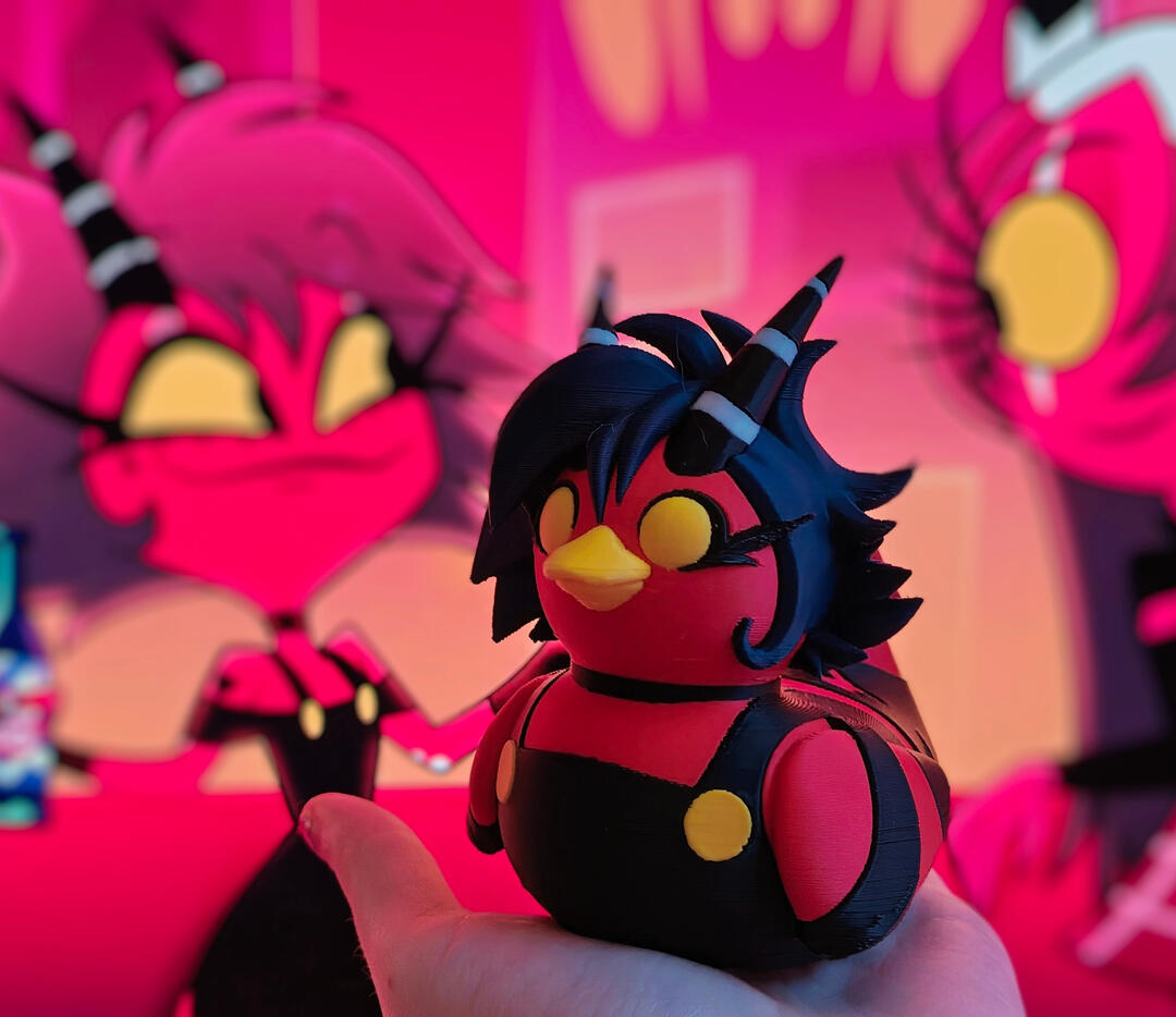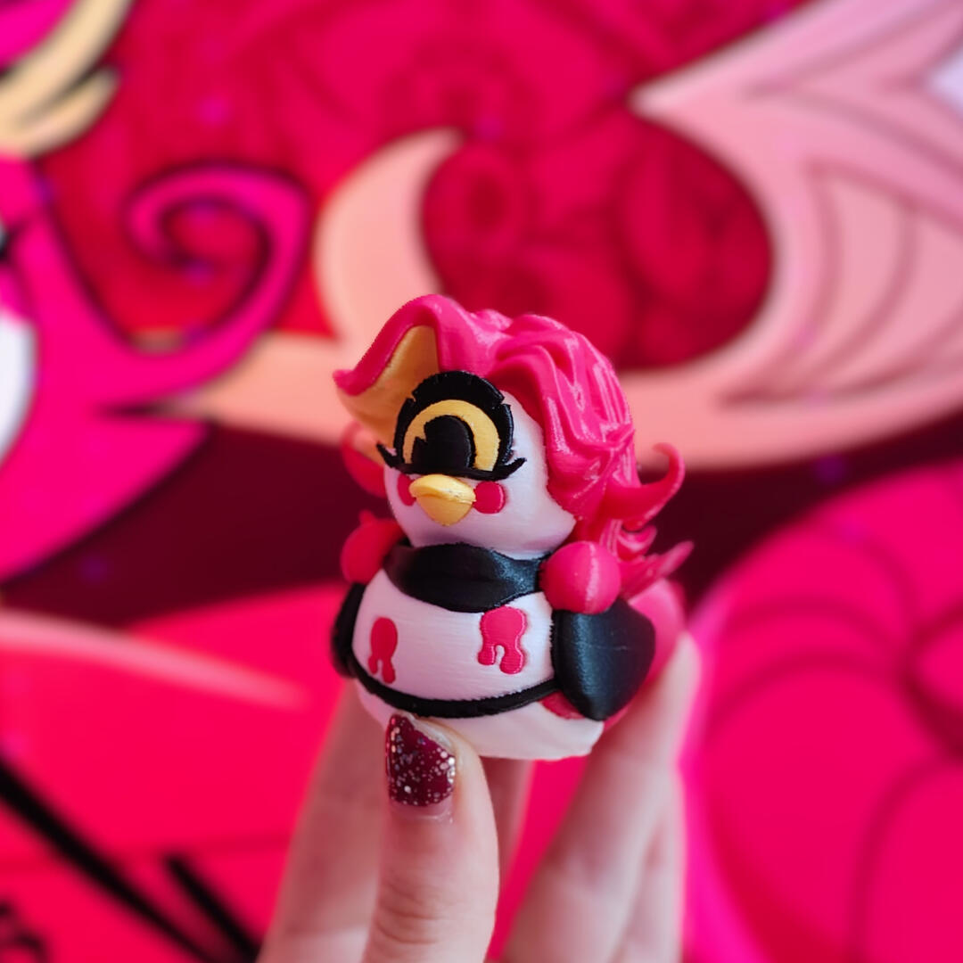 I'm only here for Angie- Never mind, LET'S GOOO!This is a model of Cherri Bomb from Hazbin Hotel as a rubber ducky, like Lucifer might create!Included is the STL and a BambuLab 3mf painted file!